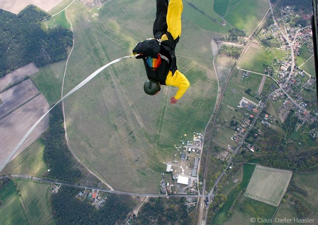 Beim ersten Freifall-Sprung fällt der Springer eine bis drei Sekunden frei bevor er selbständig den Fallschirm öffnet.